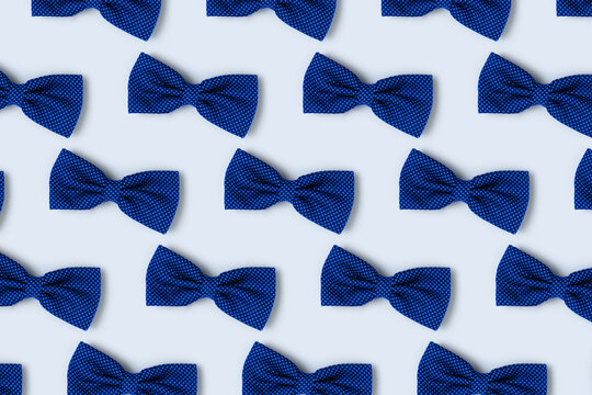Bow ties repetitive pattern on a blue pastel background. Creative concept.