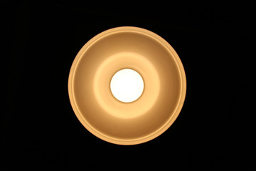 A modern, minimalist table lamp with a curved bowl and warm glow.