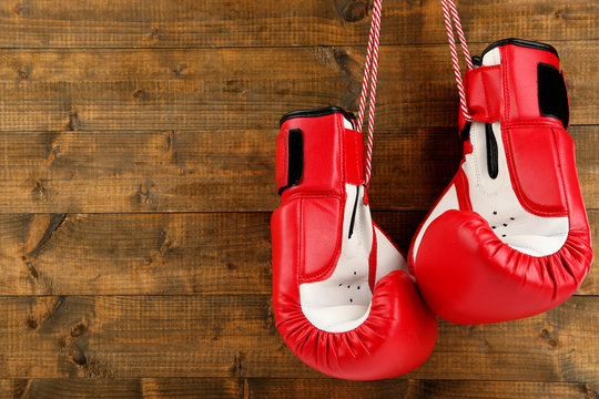 Boxing Gloves Clash, Two red boxing gloves facing each other, Sports and Competition.