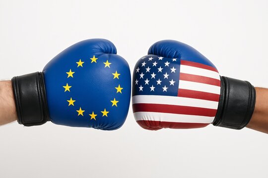 EU vs USA confrontation with boxing gloves
