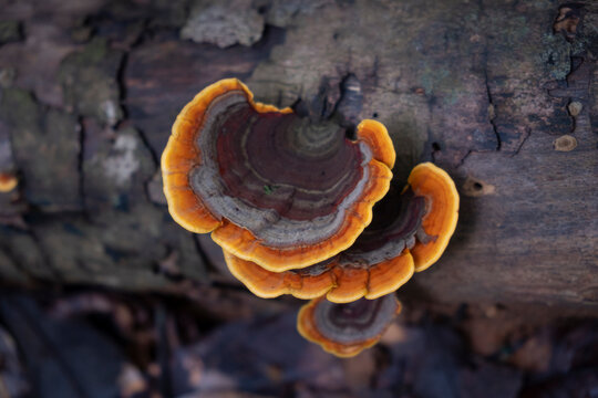 Many-Zoned polypore bracket fungus growing on a tree trunk