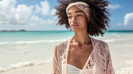 Go for a beachychic vibe with a flowy kimono coverup crochet top and a braided headband while soaking up the sun on a secluded stretch of sand.