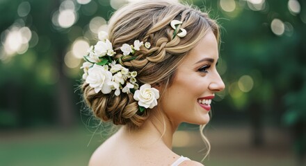 Elegant updo hair styling tutorial modern studio photography bright setting side view beauty concepts
