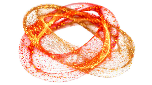 Close-up of festive white rope and braided Christmas decoration with warm fairy lights at winter holiday market