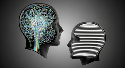 Artificial intelligence concept: human brain vs machine mind, technology and future.