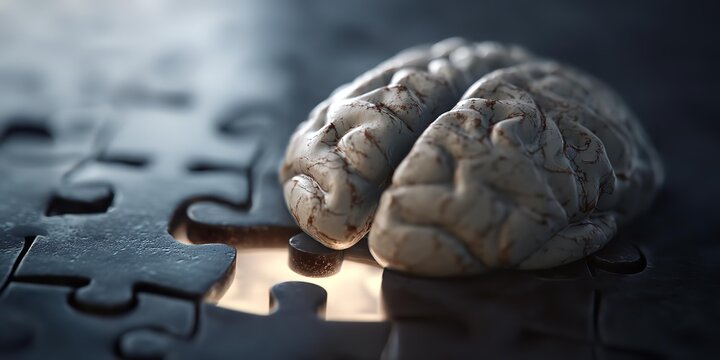 Futuristic image of brains on the jigsaw puzzles.