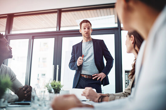 Young professional conducting meeting with sticky notes conceptualizing ideas