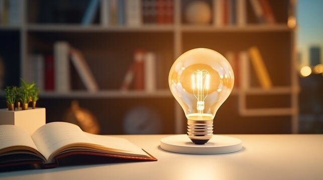 Illuminated light bulb for idea, innovation and inspiration concept. Creative solution and brainstrorming