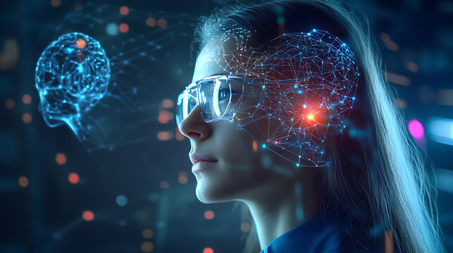 A cyberneticist developing advanced brain machine interfaces for controlling smart devices, laboratory with neural interfaces, brainwave sensors