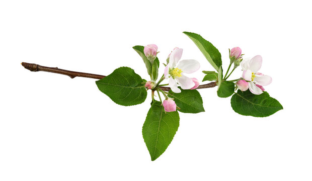 Sunrise with new buds on a branch in a garden during springtime in the morning light