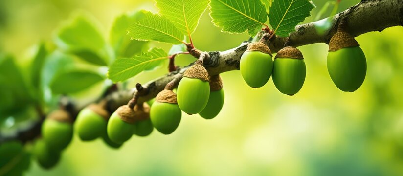 Tiny green sapling sprouts on moss covered branch bathed in soft forest sunlight