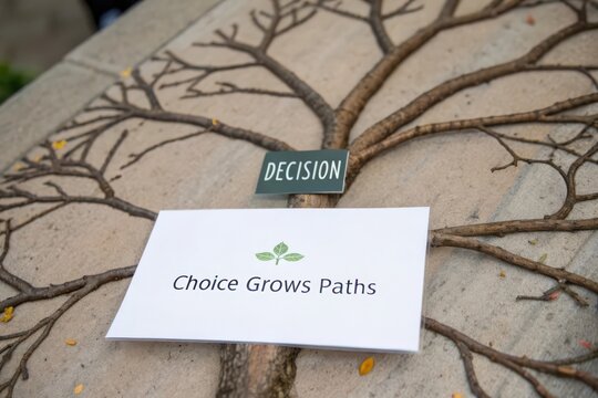 Overhead view of a branching tree diagram illustrating decisions and choice growing paths