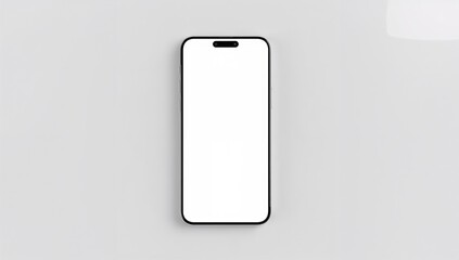 Modern smartphone with blank white screen on clean surface, showcasing minimalist design, sleek hardware features, and neutral background for technology, product mockup, or user interface presentation