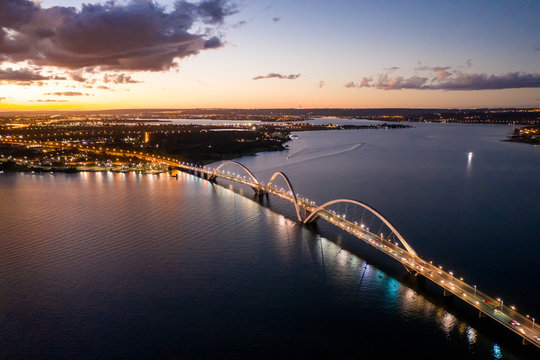 Brasilia`s Juscelino Kubitschek bridge at sunset