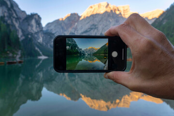 The Pragser Wildsee called Lake Braies is a lake in the Prags Dolomites in South Tyrol