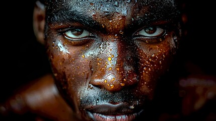 Sweaty face of man close-up in gym