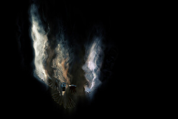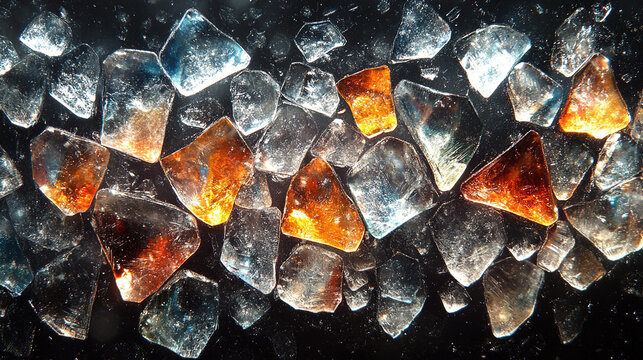 Shattered glass pieces scattered creating modern abstract design with fragmented geometric shapes