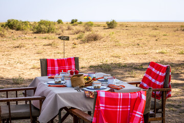 Luxury bush breakfast in Amboseli national park, Kenya.