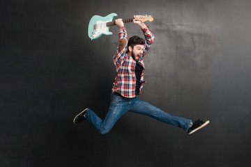 Close up of hands breaking a golden brown croissant revealing flaky layers.