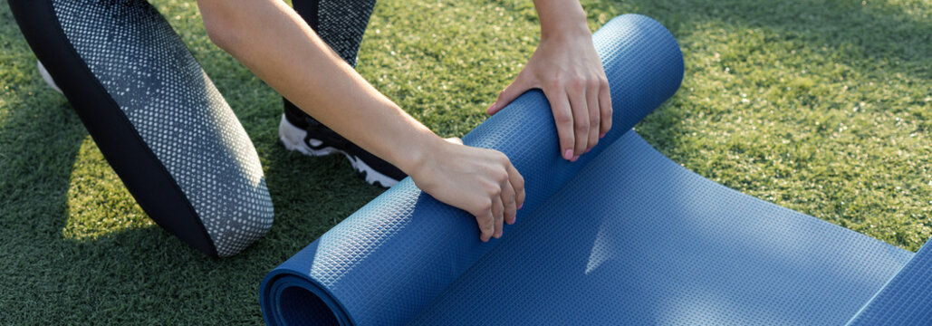 Asthmatic Woman Takes A Break From Exercise To Use Inhaler