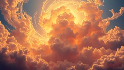 A breathtaking view of vibrant orange and yellow clouds filling the sky with a celestial glow effect