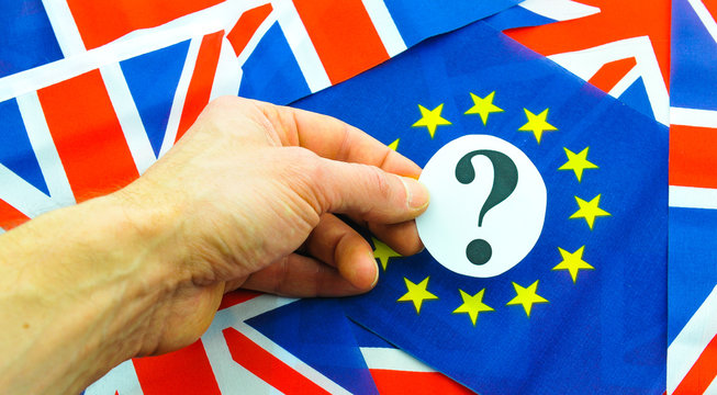 Brexit referendum UK (United Kingdom or Great Britain or England) withdrawal from EU (European Union), British vote leave. The flag of UK & EU Symbolic that represent a lot of concept design to Brexit