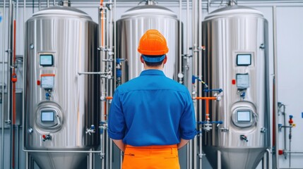 Brewery Engineer Monitoring Brewing Equipment For Quality Control Images