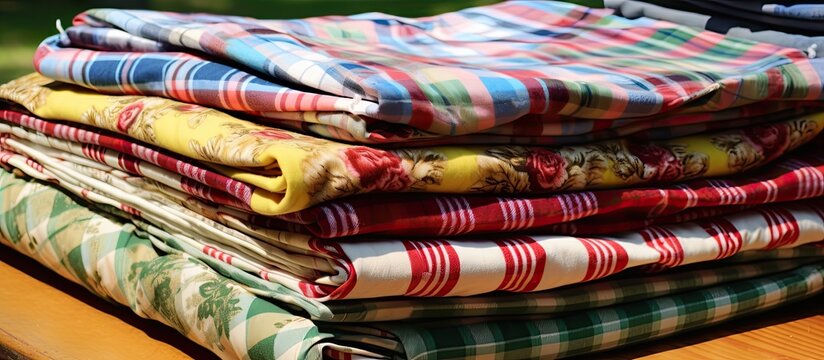 Assorted homemade camping tablecloths, including vintage fabric from my grandmother's old camper.