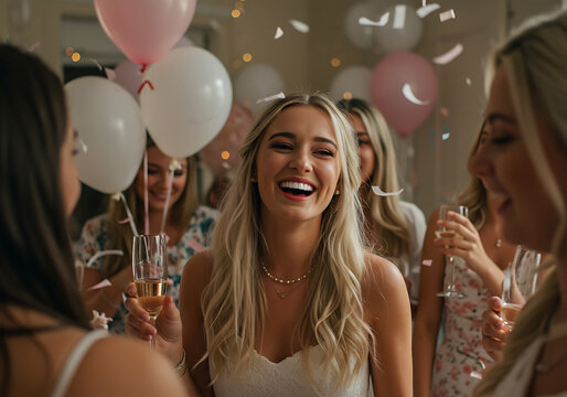 Joyful bride-to-be celebrating with friends during bachelorette party