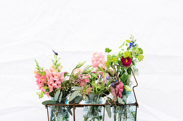 Colorful bridal bouquet with roses and succulents for a rustic wedding