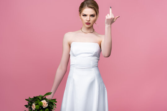 Bride holding vibrant pink and white wedding bouquet