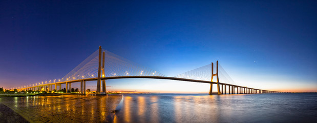 Cars driving across Penang bridge at sunrise, Penang, Malaysia