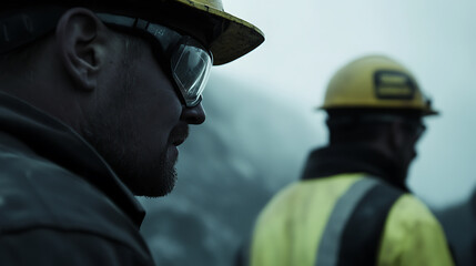Mining supervisor conducting a safety briefing for workers involved in lithium extraction activities. Featuring safety briefing