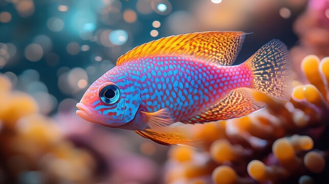 A beautifully patterned fish swimming in a vibrant aquatic environment