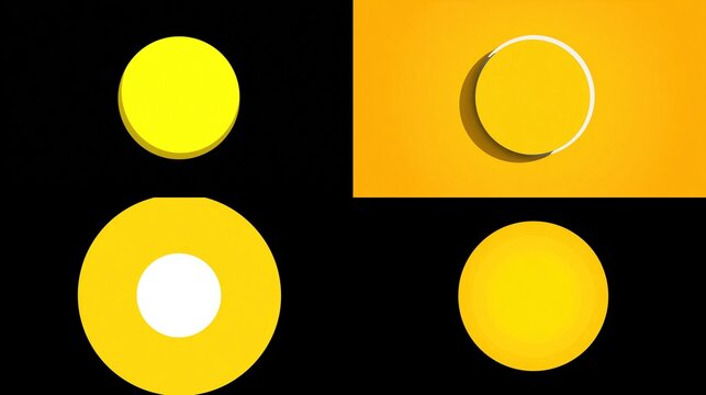 Four yellow circles arranged in quadrants on black & orange backgrounds