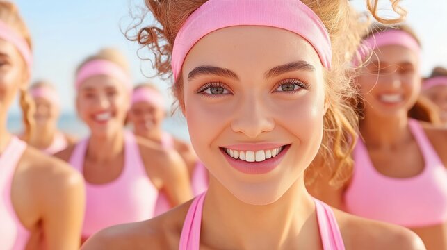 stunning young woman with braided hair and bright pink sportswear against pink background