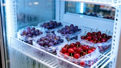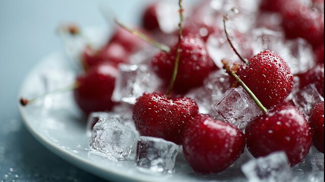 Fresh red cherries on vibrant liquid surface for culinary design