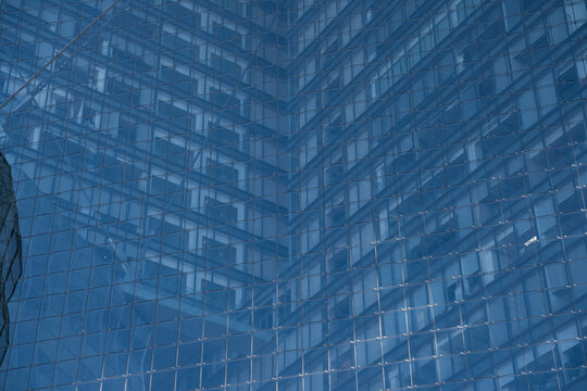 Textured blue fabric abstract background. Elegant wavy surface and bright reflections create a sense of movement. Ideal