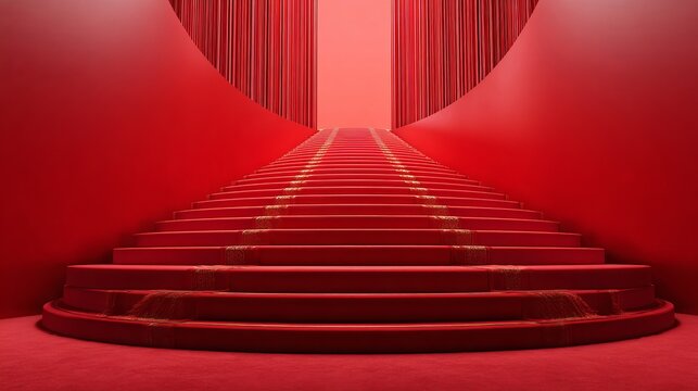 Red carpet staircase abstract design for modern events or creative projects, conveying luxury, glamour, and a sense of achievement and sophistication