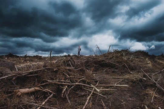 all were wiped off the face of the earth after the battle. black clouds over the world. the ground is pitted with caterpillars of tanks and guns. nuclear war concept. world on the brink of disaster
