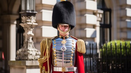 Valiant british empire military officer in red uniform amidst misty battlefield