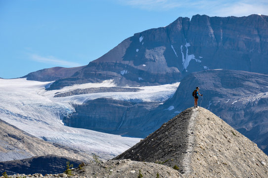 Iceline trail famous hike with beautiful glacier lake with blue colour, Canadian Rockies, British Columbia, Canada