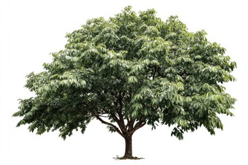 Variety of Green Trees Including Deciduous and Pine Species on White Background