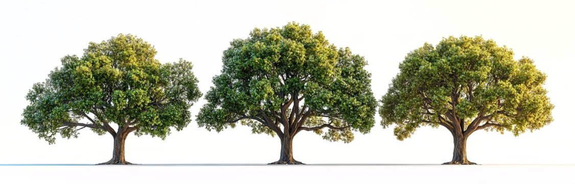 Trio of Lush Deciduous Trees: Natural Green Collection