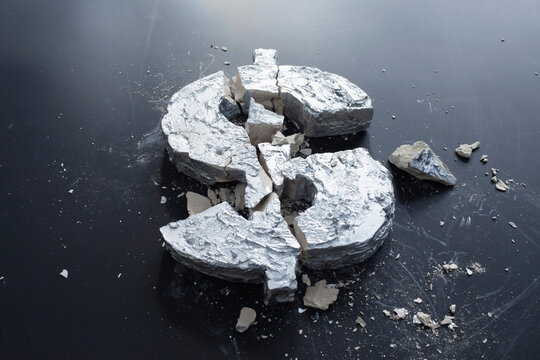 Broken stone pieces with a dollar sign
