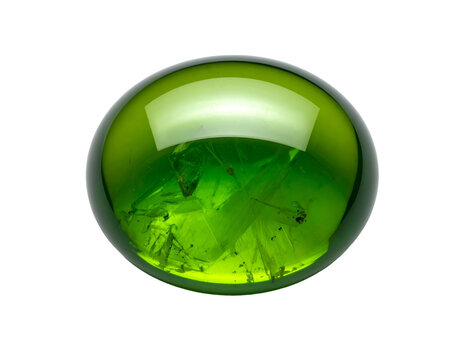 Shiny green glass sphere with fractured inclusions