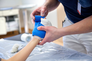 Close-up of Female Broken Arm in Plaster Cast