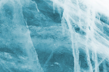 Ice, crushed on black background. Pieces of crushed ice spreading away. The explosion of ice.