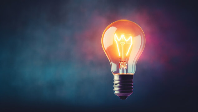 Light bulb with vibrant color explosion against blue backdrop