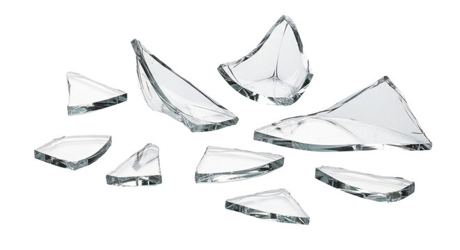 Shattered glass pieces. Pieces of broken glass isolated on transparent background.